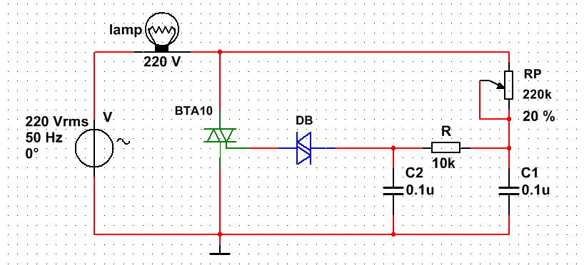 方案(àn)一:基於硬件電路的可調導(dǎo)通角。220V交流電源直接通過(guò)燈泡、電(diàn)阻(zǔ)R、RP對電容C2充電,當C兩端電壓(yā)達到雙向觸發管DB的導通電壓時,雙向觸發管導通,雙向可控矽BTA10也同時被觸發導通,燈泡lamp點亮。調節RP能改變C2的充/放(fàng)電時間常數(shù),因而改變觸發脈衝的長短,改變(biàn)了BTA10的導通角(導通程度),達到調節燈泡亮(liàng)度(dù)的目的。