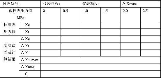 (1)標準壓力表(0.25級(jí)) 2.5MPa 1塊(2)被校壓力表(1.6極) 2.5MPa 1塊2.壓力校驗器6MPa 1台三、實驗係統圖