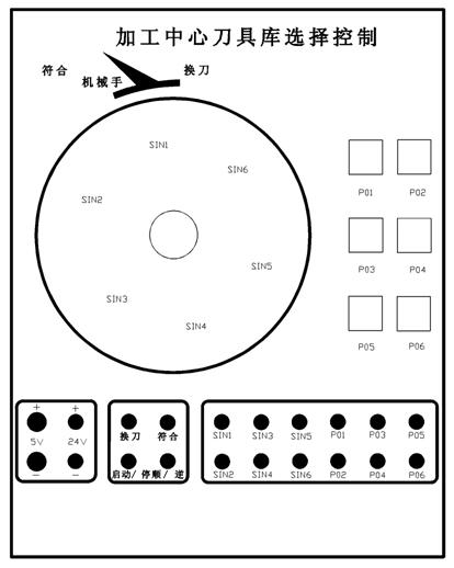 1.加工中心刀具庫選(xuǎn)擇控製演示板(bǎn)結構如圖所示。