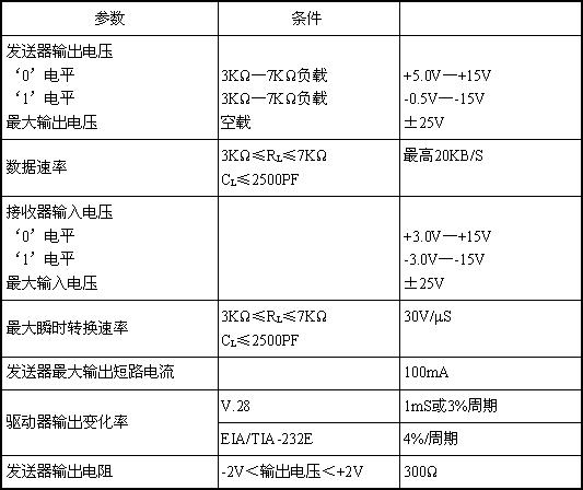 由於(yú)RS-232是早期(qī)為促進公用電話網(wǎng)絡進行數(shù)據通信而製定的標準,其邏輯電平對地是對稱的(de),完全與TTL、CMOS邏輯(jí)電平不同(tóng)。RS-232的邏輯(jí)電平規定:邏(luó)輯‘0’電平為+5~+15V,邏輯‘1’電平為-5~-15V。因此(cǐ)具有(yǒu)RS-232電平(píng)的器件(jiàn)與具有TTL電平的器件要互相連接必須先經過電平轉換。表23-1為現(xiàn)行的EIA/TIA  RS-232E,CCITTV.28標準摘要: