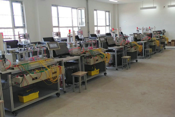 實驗目的: 1、氣動係統的安裝與調試項目: 選用該裝置配置的單出杆氣缸、單出雙杆氣缸、旋轉氣缸等氣動執行元件(jiàn)和單控電磁換向閥、雙控電磁換向閥和磁性開關(guān)等氣動控製元件,可(kě)完成下列氣動技術的(de)工作任務: 項目一 氣動方向控製回路的安裝; 項目二 氣動(dòng)速(sù)度控製回路的安裝; 項目三 擺動控製回路的安裝; 項目四(sì) 氣動順序控(kòng)製回路的安裝; 項目五 氣動機(jī)械手(shǒu)裝置的安裝; 項目六 氣動係統安裝與調試; 2、電氣(qì)控製電路的安裝和PLC程序編寫(xiě)項目: 選用該裝置配置的PLC模塊、變頻器模塊和指令(lìng)開關、傳(chuán)感器等,可完成下列PLC應用技術工作任務: 項目七 電動機正反轉控製電路的連接與控製程序編寫(xiě); 項目八(bā) 電動(dòng)機調速控製電路的連接與控製程序編寫; 項目九 氣動方向控製程序編寫; 項(xiàng)目十 氣動順序動作控製(zhì)程序編寫; 項(xiàng)目十(shí)一 氣動機械手(shǒu)控製程序編寫; 項目十(shí)二(èr) 皮帶輸送機(jī)控製程序編(biān)寫; 項目十三 機電一體(tǐ)化設備控製程序編寫; 項目十四 自動生產線(xiàn)控製程(chéng)序編寫。 3、機電設備安裝與調試項目 選用該裝置配置的機電一體化設備部件、PLC模塊、變頻器模塊和指令開關、傳感器等,可完成下列機電(diàn)設備安裝和機電一體化技術的工作任務: 項目十五 傳動(dòng)裝置同軸度的調整; 項目十六 皮帶輸送機的安裝與(yǔ)調整; 項目十七 搬運機械手設備安(ān)裝與調試; 項(xiàng)目十八 物(wù)件分揀設備的安裝與調試; 項目十九 送料設(shè)備的安(ān)裝與調試; 項目(mù)二十(shí) 自動生(shēng)產線設備安裝與調試。 4、自動控製係統安裝與調試項(xiàng)目 選用該(gāi)裝置(zhì)配置的(de)機(jī)電一體化設備部件、PLC模(mó)塊(kuài)、變頻器模塊和指(zhǐ)令開(kāi)關、傳感器(qì)等,可(kě)完成下列機電設(shè)備安裝(zhuāng)和機電一體化技術的工(gōng)作任務: 項目二十一 多種傳感器的安裝與調試; 項目二十二 機械手的自動控製; 項目二十(shí)三 皮(pí)帶輸送機的自動控製; 項目二十四 機電一體化設備的自動控製(zhì); 項目二十五 PLC控製係統的安裝與調試; 項目二十六 自動生產線的安裝與調(diào)試。 5. PLC工業通訊網(wǎng)絡的安裝及調試(shì) 係統選(xuǎn)用三菱PLC主控製器,配合FX1N-485BD網絡模塊,基於本網絡通信功能,可完成下列工業現場總線通信技術訓練任務(wù): 項(xiàng)目二十七N:N網絡的硬件連接、調試 項目二十八N:N網絡參數設(shè)置、調試 項目二十九基於多台PLC的複雜網絡數(shù)據讀寫程序編(biān)寫與調試 |