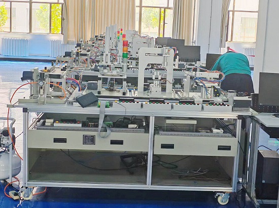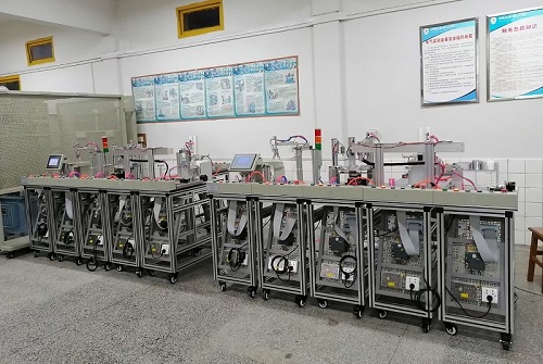 一、建設目(mù)標 結合(hé)學院當前和未(wèi)來的發展規劃(huá)目標,本次規劃設計的工業機器人技能技能工作室能(néng)達到以下(xià)目標: --具備能夠滿足各專業教學實訓的基本技能(néng)、綜合技能(néng)、創(chuàng)新技能,以(yǐ)及(jí)中級、高級、技師、高(gāo)級技師(shī)的職業資格和(hé)人才培養的需求。 --具備能夠滿足現代先進技術並緊密結合先進製造業技術發展的(de)新工藝(yì)、新知識、新(xīn)技能、新任務的需求。 --具備能夠滿足緊缺人才培(péi)訓(xùn),高技能人才培(péi)訓,農村勞動(dòng)力轉移培訓,退役(yì)士兵培(péi)訓,職(zhí)業能力轉換培訓等綜合培訓、鑒定的需求。 --具備能夠滿足國家骨幹師資培訓,一體化教學師資培訓及其他(tā)雙(shuāng)師(shī)型師(shī)資培訓等綜合性師資培訓的需求。 --具備能夠滿足(zú)開展教學研討,開展(zhǎn)技(jì)能競(jìng)賽,開展學術交(jiāo)流(liú),開展課程(chéng)改革等等需(xū)要的多(duō)功能綜合性基地的需求。 規劃設計的一體化機電專業、電氣和自動化專業、工業(yè)自動化專業實訓基地的實訓裝備,本著(zhe)實用性,實操性,職業性,綜合性為出發點,其技術優勢如下: 技(jì)術的先進性 整套方案體現出現代製造(zào)業領域中所包含的PLC控製技術、網絡通信技術等先(xiān)進控製理念及(jí)管理係統(tǒng)。 --技術的前瞻性 本套方案在基於現代控(kòng)製理(lǐ)念的基礎上,突出體現現代(dài)製造業前沿(yán)科(kē)技的應知點及應會點,如工業機器人控製技術,智能監控技術等。 技術的綜合性 集成了光、機、電、氣、液、網絡通信、數字控製等綜合技術的應(yīng)用,完全覆蓋現有機電專業教學大綱及(jí)流(liú)行(háng)教材的(de)訓練內容(róng)。 技術的職業性 方案所涉及的訓練(liàn)內容,在滿足機電專業教學的前(qián)提下,結合相關工種(zhǒng)的國(guó)家職業標準,既能(néng)進(jìn)行培訓練習又能(néng)用於鑒定考核。 技術的可操作性訓練載體體現高起點、高科(kē)技、高技能的特(tè)點(diǎn),該套方案配備了完整係統的解決措施,具備配套的課程體係、教學大綱、訓練教材及長期穩定的師資培訓計劃。 技術(shù)的兼容性 該方(fāng)案的技術來源於生產實際,不但能夠用於教學(xué)訓練,還能進行與生產實際相(xiàng)關的典(diǎn)型(xíng)工作任務,使學校實訓與生(shēng)產實際零距離接軌。 二、實訓項目 1.PLC認知實訓(軟硬件結構、係統組成、基本指令、接線、編程下載等) (一).PLC虛擬控製(zhì)應用實訓 1.數碼顯示控製 2.搶答器控製 3.天塔之光(guāng)控製 4.音(yīn)樂噴泉控製(zhì) 5.十字路口交通燈控製 6.水塔水位控(kòng)製(zhì) 7.自動送料裝車係統控製 8.四節傳送帶控(kòng)製 9.裝配流水線控製 10.多種液體混合裝置控製 11.自(zì)動洗衣機控(kòng)製 12.貨(huò)物分揀機控(kòng)製 13.自動售貨機控製(zhì) (二).PLC實物控製應用實訓 14.視覺識別控製 15.RFID控製(zhì) 16.長度定長控製 17.稱重控製 18.氣動基本回路控製 19.直線運動位置檢測、定位控製 20.步進(jìn)電機定位控製 21.步進電機的(de)速度控製 22.步進電(diàn)機(jī)的正反轉控製 23.伺服電(diàn)機定位控製 24.伺服電機的速度控製 25.伺服電機的正反轉(zhuǎn)控製 26.伺服電機(jī)和步進電機的綜合(hé)控製 (三).PLC、變頻器(qì)、觸摸屏綜合應用技能實訓 27.變頻器(qì)功能參數設置與操作 28.外(wài)部端子點動控製 29.變頻器(qì)控製電機正反轉 30.多段速(sù)度選(xuǎn)擇變頻調速 31.變頻器無級(jí)調速 32.外部模擬量方式的變頻調速控製 33.基於PLC的(de)變頻器(qì)外部端子的(de)電機正反轉控製 34.基於(yú)PLC模擬量方(fāng)式變頻開環/閉環調速控製 35.基於(yú)PLC通信方式的變(biàn)頻開環調速 36.基於觸摸屏控製方式的基(jī)本(běn)指令編程練習 37.基於觸摸屏控製方式(shì)的數碼顯示控製 (四).網絡通訊綜合(hé)實訓 38.PLC與變頻器RS485通訊實(shí)訓 39.PLC、觸摸屏與變頻器通信(xìn)控製 40.PLC主機之間PROFINET通訊實訓 41.PLC、變頻器、觸摸屏組網綜合應用實訓 42、PLC與RFID通訊控製(zhì) 43、PLC與(yǔ)工業(yè)相機(jī)通訊(xùn) |