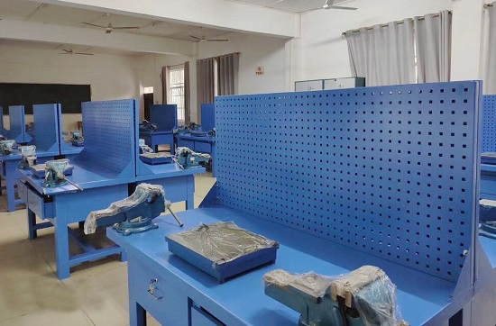 鉗工實訓室建設方案(àn)是為了配合技校、職業學校、勞動培訓中心、大中專院(yuàn)校課程中的技能訓練要求,從產品的安(ān)全保障、學教管(guǎn)係統配套、標準化生產、成熟可靠性、運輸安裝組合等多方麵出發,精心設計(jì)而成。 鉗工桌及貨架(jià)采(cǎi)用了鋼質組合式拆裝結構,利(lì)於運輸安裝及適(shì)應於(yú)各種不同實訓場地。同時采用(yòng)了磷化噴塑工藝,經久耐用。通過鉗工實訓台可以(yǐ)使學生(shēng)熟悉(xī)各種(zhǒng)工具的使用(yòng);掌握錘、鋸、銼、鑿、劃線、測量等各種鉗工的基本技能;提高學生的鉗工工藝水平。