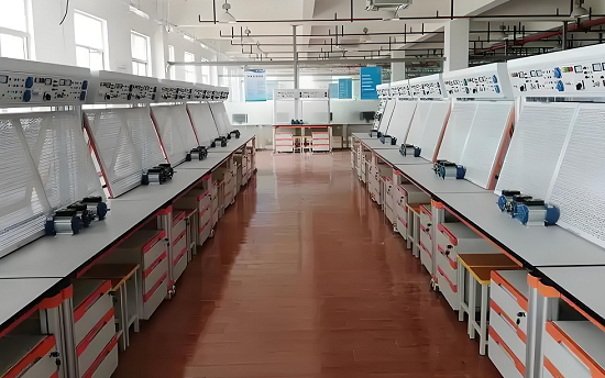 實訓項目(mù)舉例: 1、電表箱的安裝 2、配電箱的安裝 3、日光燈的(de)安裝 4. 白熾燈的安(ān)裝 5、吸頂燈的安裝 6、節能燈的安裝 7、高壓鈉燈的安裝 8、PVC管的處理與布置 9、PVC管的穿線 10、開關與插座的安裝 11、分(fèn)線盒(hé)的安裝(zhuāng) 12、線路分(fèn)配設計 13、施工規範的學習與訓練 14、安全施工要求學習與訓練 15、兩地(dì)控製一盞燈 16、線槽布(bù)線施工訓練 17、隔(gé)離(lí)開關的安裝 18、配電線路的接線實訓 19、金屬橋架的組合與安裝實訓; 20、塑料線槽的敷設(shè)實訓; 21、金屬線(xiàn)管的(de)敷設實訓; 22、電氣控製箱的安裝 23、電氣控製電路安裝實(shí)訓 24、三相異步電動機直接起動、停(tíng)車的(de)控製(zhì)電路連接(jiē); 25. 接觸器聯鎖的三相交流異步電動機正、反轉控製電路的連接; 26、按鈕聯鎖的(de)三相交流異步電動機正、反(fǎn)轉(zhuǎn)控製電路的(de)連接; 27、按鈕、接(jiē)觸器聯鎖的三(sān)相交流異步電(diàn)動機正、反轉控製電路的(de)連接; 28、三相交流異步電動(dòng)機Y-△(手動切換)啟動控製電路的連接; 29、三相交流異步電動機Y-△(時間繼電器切換)啟動控製電路的連接; 30、三相交流異步電動機能耗製動控製(zhì)電路的連接; 31、三(sān)相交流異步電動機反(fǎn)接製動(dòng)控製電路的(de)連接(jiē); 32、多台(3台(tái)及以下(xià))電動機的順序控製(zhì)電路的連接 33、電動機的往返行程控製(zhì)電路的連接; 34、普通車床控製電路(lù)的連接; 35、三相交流異步電動機既能點動,又能連續轉動控製電(diàn)路連接; 36、兩地控製電路的連接; 37、按鈕切換的雙速電動機調速控製電路的連接; 38、時間繼(jì)電器切換的雙速電動機調速(sù)控製(zhì)電路的連接; 39、變頻器麵板功能參數設置和操作實訓; 40、變頻器對電機點動控(kòng)製、啟停(tíng)控製; 41、電機轉速多段控製; 42、工頻、變頻切換控製; 43、基於模擬量控製的電機開環調速(sù); 44、基於麵板操作的電機開環調速(sù); 45、變頻器的保護和報警功能實訓(xùn); 46、基(jī)於PLC的(de)變頻器開環調速; 47、PLC控製電機順序啟動; 48、PLC控製三相異步電動機Y-△啟動電路; 49、觸摸屏的參(cān)數(shù)設置; 50、觸摸屏(píng)的編程; 51、觸摸屏、PLC、變(biàn)頻器的(de)綜合實訓; 52、兩相混合式步進電機(jī)的控製; 53、交流伺服電機的(de)控製; 54、CA6140車床電路的(de)操作及故障考核實訓; 55、Z35鑽床電路操作及故障考核實訓(xùn); 56、X62W萬能銑床電路操(cāo)作及故障考核實訓; 57、T68鏜床(chuáng)電路操作及(jí)故障考(kǎo)核實訓; |