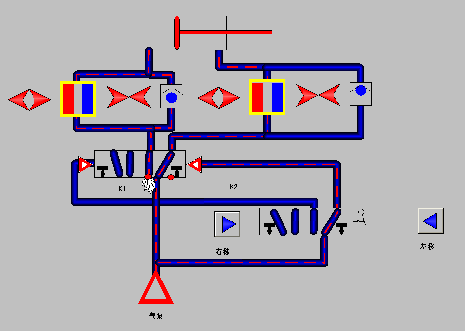 用組態仿真畫麵演示控製的氣動控製實訓示列