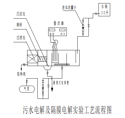d)將配好的原水(shuǐ)倒入到高位水箱,將(jiāng)流量計控(kòng)製旋鈕調到最大,直到汙水注滿電解槽後(hòu)停止(zhǐ)加入。
