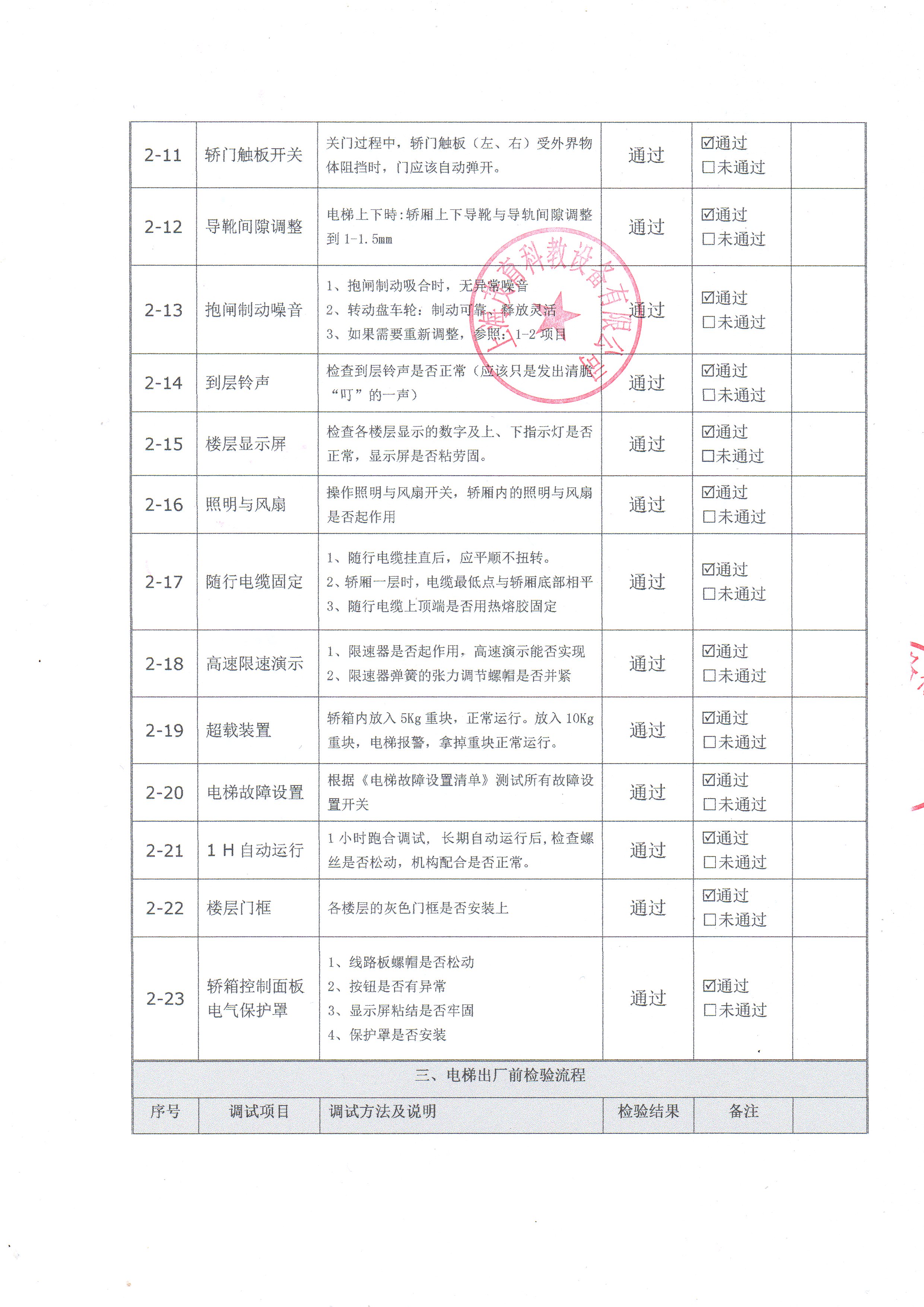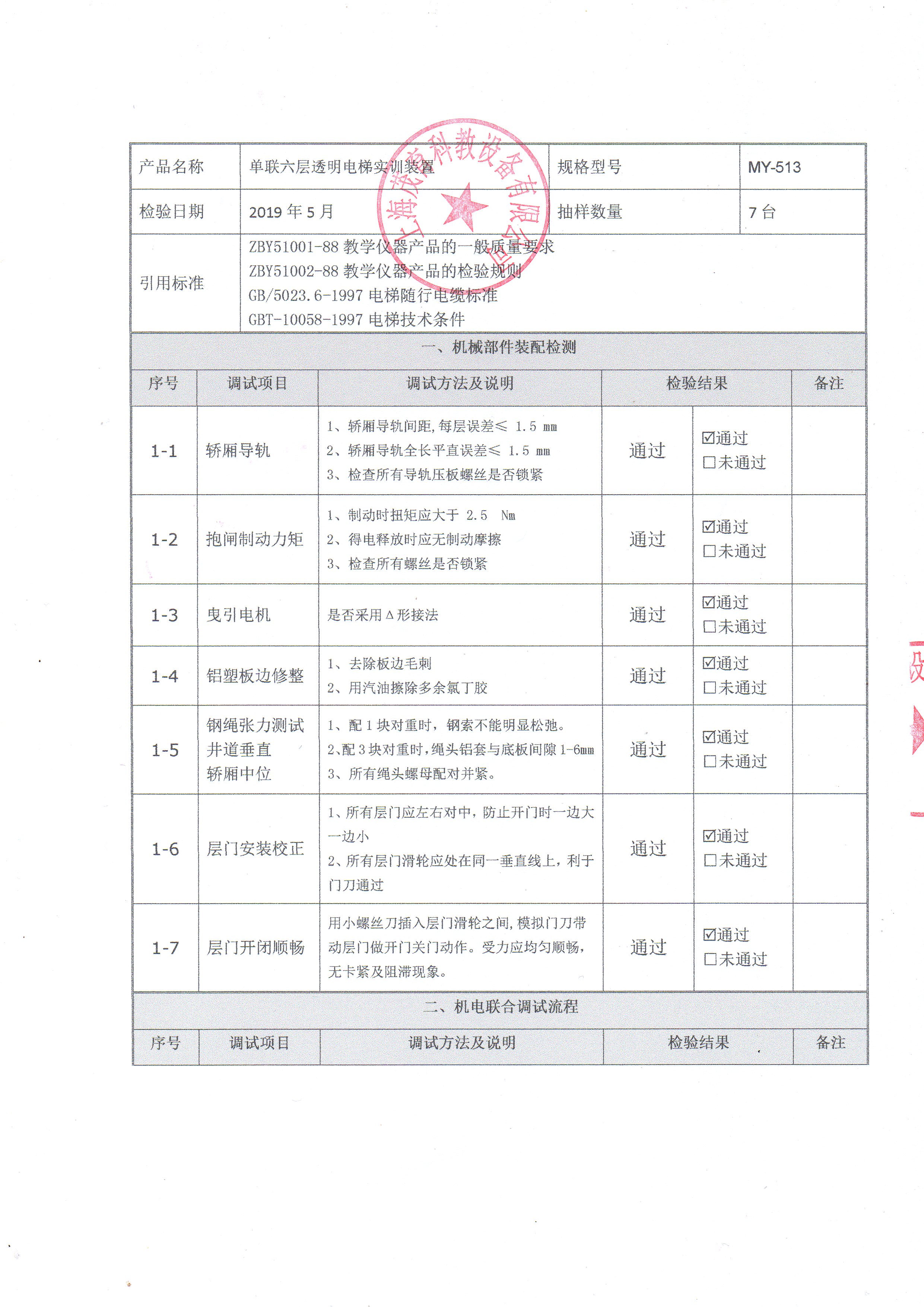 透明教學電梯模型出廠檢測報告