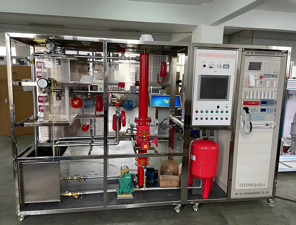 模型框(kuàng)架和水(shuǐ)箱等主要部件全部使用不鏽鋼器件,保證不生鏽、不易老化,模擬兩層大樓噴淋滅火係統;模型係統主要由(yóu)噴(pēn)淋水(shuǐ)泵、氣壓罐、濕(shī)式報警閥、水力警鈴、延時器(qì)、壓力開關、水流指示器、封閉式噴頭、試驗(yàn)閥、火災探測器(qì)、火災報(bào)警器等典型噴水滅(miè)火(huǒ)設(shè)備構成,能生動(dòng)模擬大樓內水滅(miè)火係統的典(diǎn)型結構。