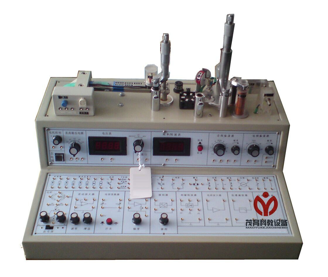 傳感器安裝(zhuāng)台部分:裝有雙平行振(zhèn)動梁(liáng)(應變片、熱(rè)電偶、PN結、熱敏電阻、加熱器、壓電傳感器、梁自由端的磁鋼)、激振線圈、雙平行(háng)梁測微頭、光纖傳感(gǎn)器的光電變換座、光纖及探頭小機電、電渦(wō)流傳感器及支座、電渦流傳感器引線Φ3.5插孔、霍爾傳感器的二個半(bàn)圓磁鋼、振動平台(tái)(圓盤)測(cè)微頭及支架、振動圓盤(圓盤磁鋼、激振線圈、霍爾片、電渦(wō)流檢測片、差動變壓器的可動芯子、電容傳感(gǎn)器(qì)的動(dòng)片(piàn)組、磁電傳感器的可動(dòng)芯子)、擴散矽壓阻式傳感器、氣敏傳感器及濕敏元(yuán)件安裝盒。