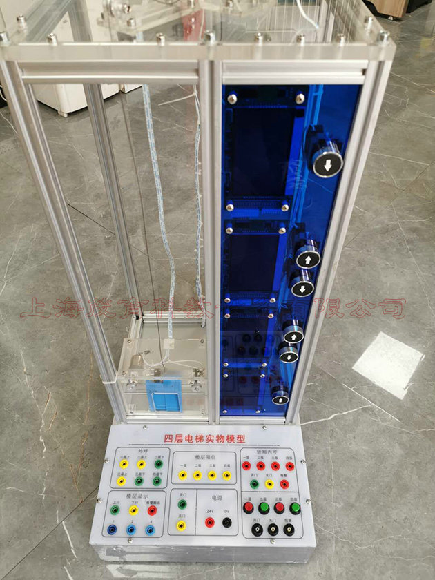 電梯為微型四層電梯模型,基本具備實際電梯的所有功能。具有轎廂的升降(jiàng)和轎廂門的開與(yǔ)關功(gōng)能的拖動係統,可采集現場的各種信號(hào),如內選按鈕信號、外選按鈕信號、平層、限(xiàn)位信(xìn)號、廂門限位信號,實(shí)現各種方式下電梯運(yùn)行(háng)的邏輯控製功能。可作(zuò)為(wéi)PLC、單片(piàn)機的被(bèi)控對象使用。具有性能可靠、運行平穩、操作(zuò)簡單、能耗低和便於(yú)實訓(xùn)教學。