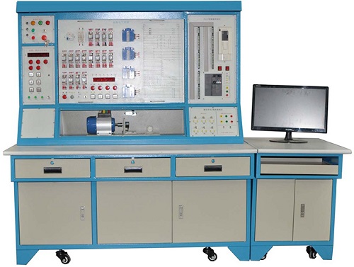 實訓屏部分:實訓屏分上下(xià)兩部分,上(shàng)部分掛箱(模塊)空位(wèi),以及PLC,公用按鍵指示(shì)燈板,漏(lòu)電開關;下部分是門機係統模擬控製區和三相電(diàn)機,操作過程及結(jié)果直觀移動,並設置了門機減速開關位置調節,並且控製端都以插線端子的形式引出,方便學員實訓(xùn)。
