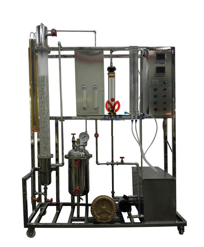 本裝置主要配(pèi)置(zhì):吸收塔、空壓機、氣化器、流量計、壓差計、阻力管、泵、水(shuǐ)槽、氣相(xiàng)色譜、不鏽鋼框架、控製屏。