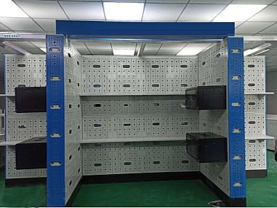 3)每個實訓角區域安(ān)裝有樓(lóu)層模擬板+支架2套,模擬三層建築結構,每個角型區域配套2-3套,8個(gè)角(jiǎo)共計16-24套6U實訓機櫃,冷軋鋼板,堅固(gù)耐用,機櫃五麵設有16個Φ25進出線(xiàn)孔,鋼化玻璃門(mén)。