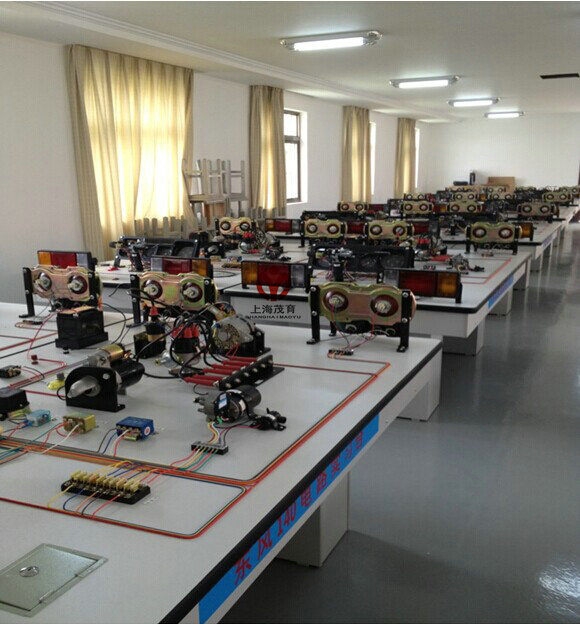 實驗台按照東風、解放汽車標準電器線路安裝而成。配有全車電線束,儀表盤,各種(zhǒng)開關、前後燈光分電路、點火(huǒ)線圈、傳感器、繼電器。均用(yòng)實車實物裝成。