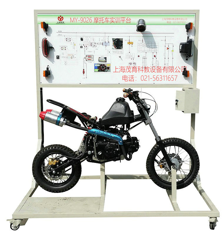 摩托車實(shí)訓平台,摩托(tuō)車實訓裝置,摩托車(chē)實(shí)訓設備采用(yòng)本田125c摩托(tuō)車總成與整車電器實物為(wéi)基(jī)礎,充分展示儀表係統、燈光係統、雨刮(guā)係統、喇叭(bā)係統、發動機電器係統、起動係統和充電係統等電器(qì)各係統的組成結構和工作過程。