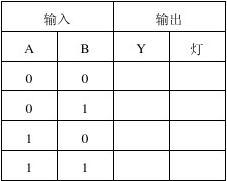 3、啟動(dòng)EWB的仿真功能,按表1的輸入狀態組合將開關A、B擲於不同(tóng)的位置狀態,並觀察顯示燈的亮暗情況,將結果記入表中。應的邏輯真值表中。