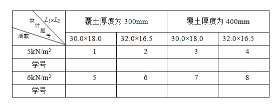 (2)可(kě)變荷載:第一組5kN/m2,第二組6kN/m2。每個學生按設計題號選用具體(tǐ)數值,活荷(hé)載準永(yǒng)久值係數yq=0.1。