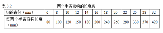 (1)對有彎鉤的鋼筋,在計算(suàn)長度時,應加上彎鉤(gōu)長度(dù),每兩個半圓彎鉤的長度為: