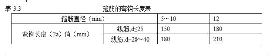 (2)一般箍筋標準內包尺寸,箍筋的彎鉤長度按下表: