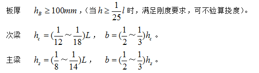 1)板、次梁、主(zhǔ)梁的截麵尺寸確定。