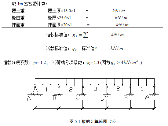 板為多跨連(lián)續板(bǎn),對於跨數超(chāo)過五跨的等截麵連續板,其各跨受荷相同(tóng),且跨差不超過10%時,均(jun1)可按五跨等跨度連續板計算。