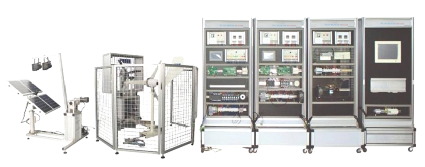 本裝置主要由光伏供電裝置、風力供電係統、逆變與負載係統、監控係統組成。係統采用模(mó)塊式結構(gòu),各裝置(zhì)和係統具有獨(dú)立的功能,可以組合成光伏發電實訓係統、風力發電實訓係統。